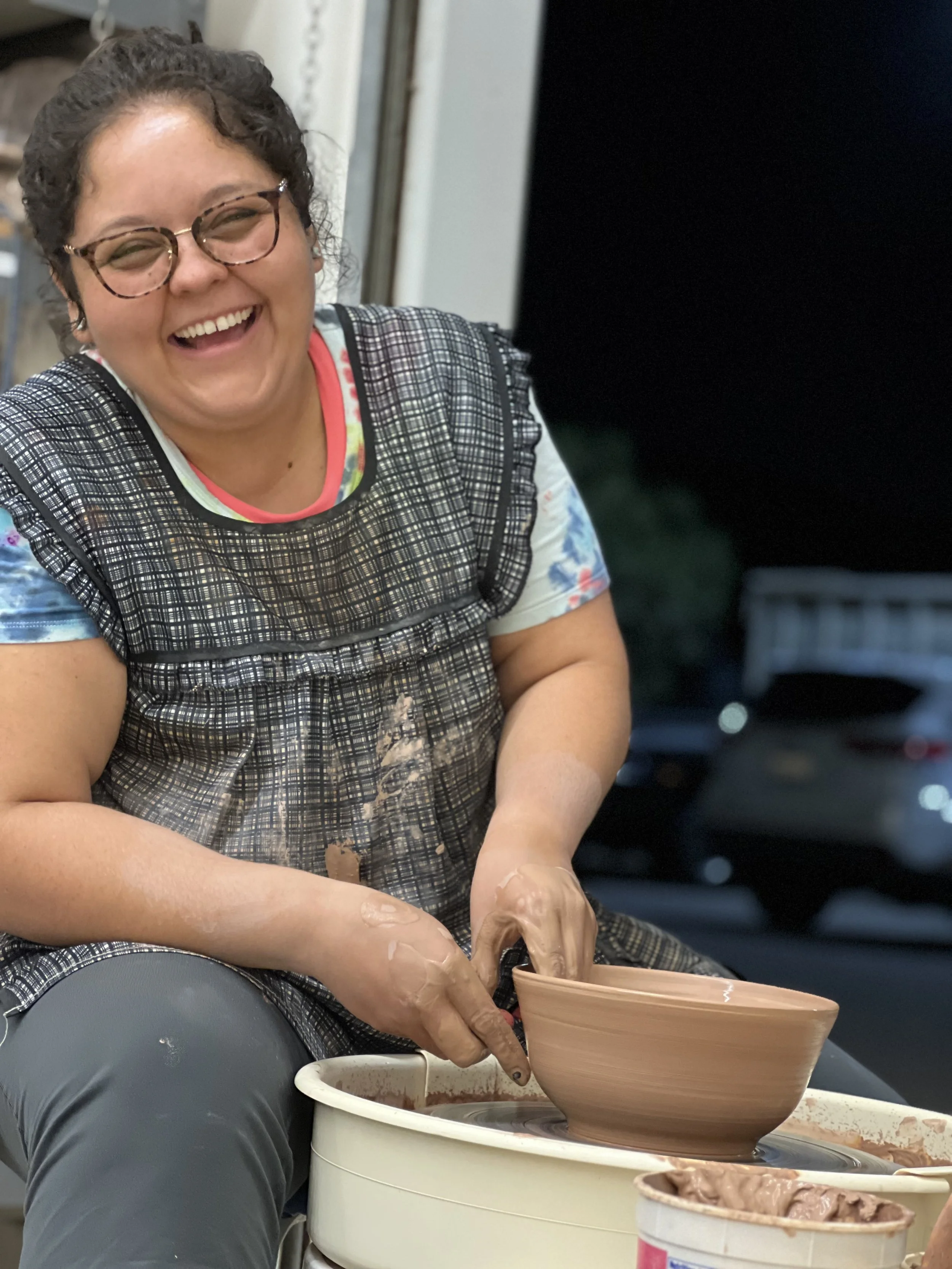 Sonia discovered her passion for pottery in April 2021 during a beginner course at Community Clayworks, and since then, clay has become an integral part of her life. She believes in the power of creativity and learning through experimentation. She embraces the idea that "no piece is a failure," viewing each creation as an opportunity to grow and refine her skills. Her teaching philosophy reflects her own journey: pottery should be fun, and often, the most beautiful results come from what may initially seem like mistakes. With a warm and encouraging approach, Sonia is excited to share her love of wheel throwing with others and inspire fellow artists to find joy in their own creative processes.